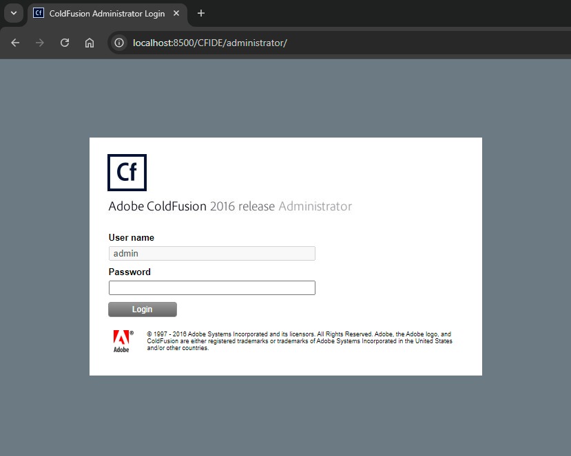Se no seu ambiente, o ColdFusion foi instalado com as configurações padrão, o painel administrativo do ColdFusion fica acessível pela porta 8500, sob a url parcial "/CFIDE/administrator". Por exemplo, se você está executando o ColdFusion em seu ambiente localhost, o painel administrativo estará na URL: "localhost:8500/CFIDE/administrator".