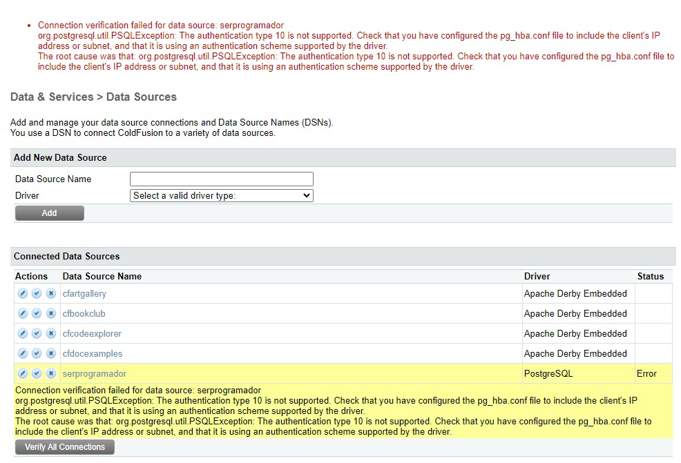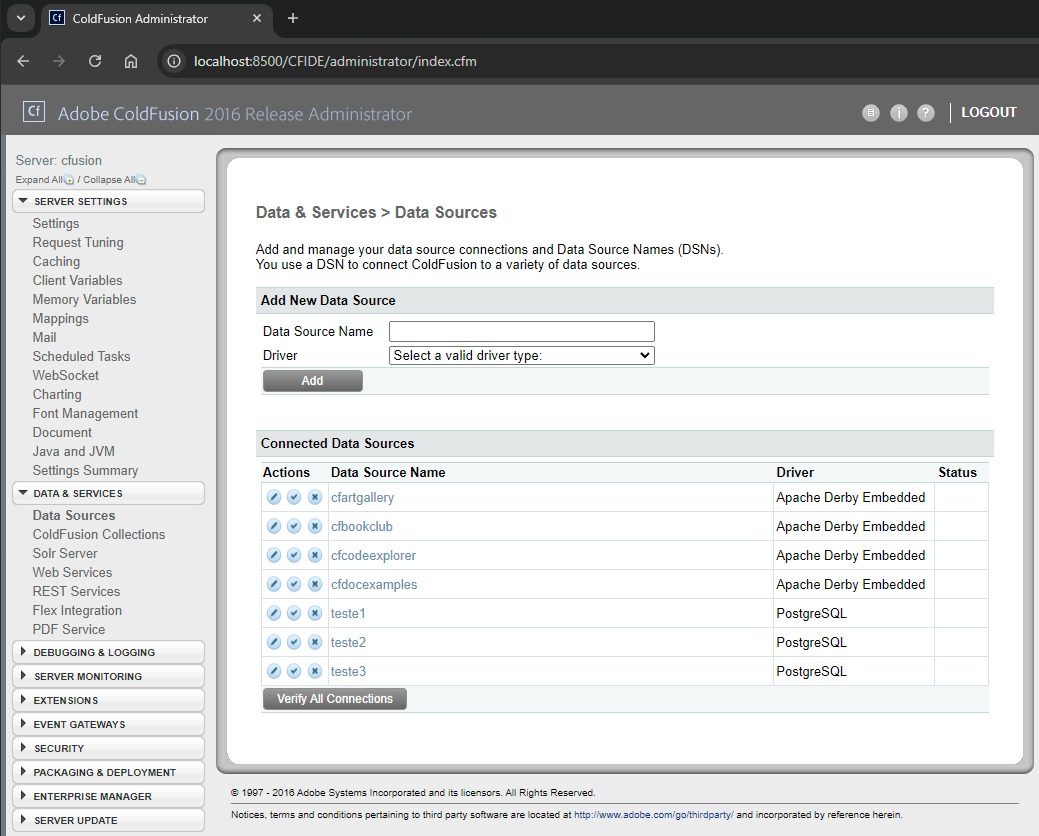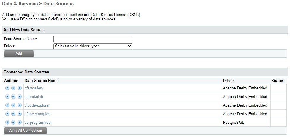 A partir de agora você já pode usar a conexão cadastrada para efetuar as queries no ColdFusion!