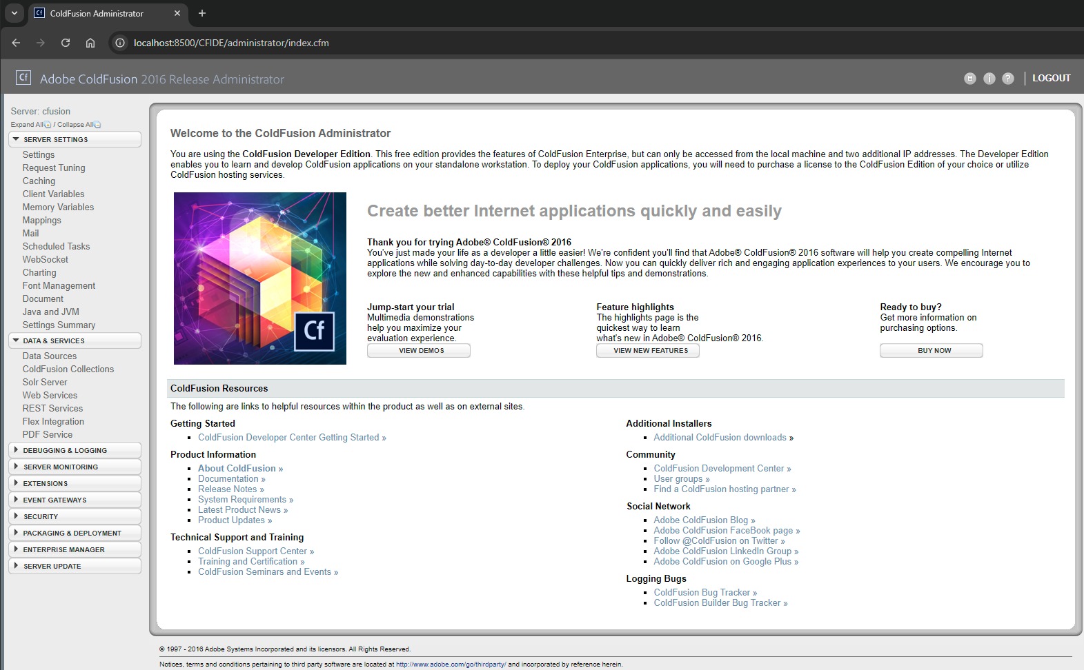 Se você já tem um pouco de afinidade com o ColdFusion, já deve saber que várias das configurações são feitas exclusivamente no painel administrativo do ColdFusion, que fica no próprio ambiente onde o ColdFusion está sendo executado.